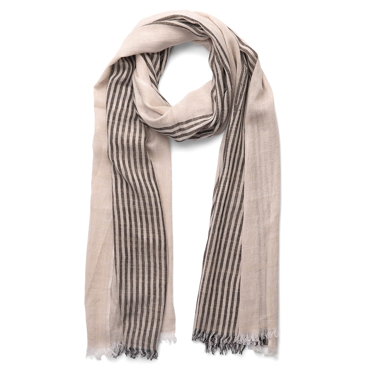 Simple and elegant, our Mila is the perfect summer wrap. Featuring 100% cotton yarns, the Mila has a naturally soft, gauzy feel and is crafted by our artisan weavers in India. The classic vertical stripes and relaxed feathered edge make the Mila a delightful summer wrap.