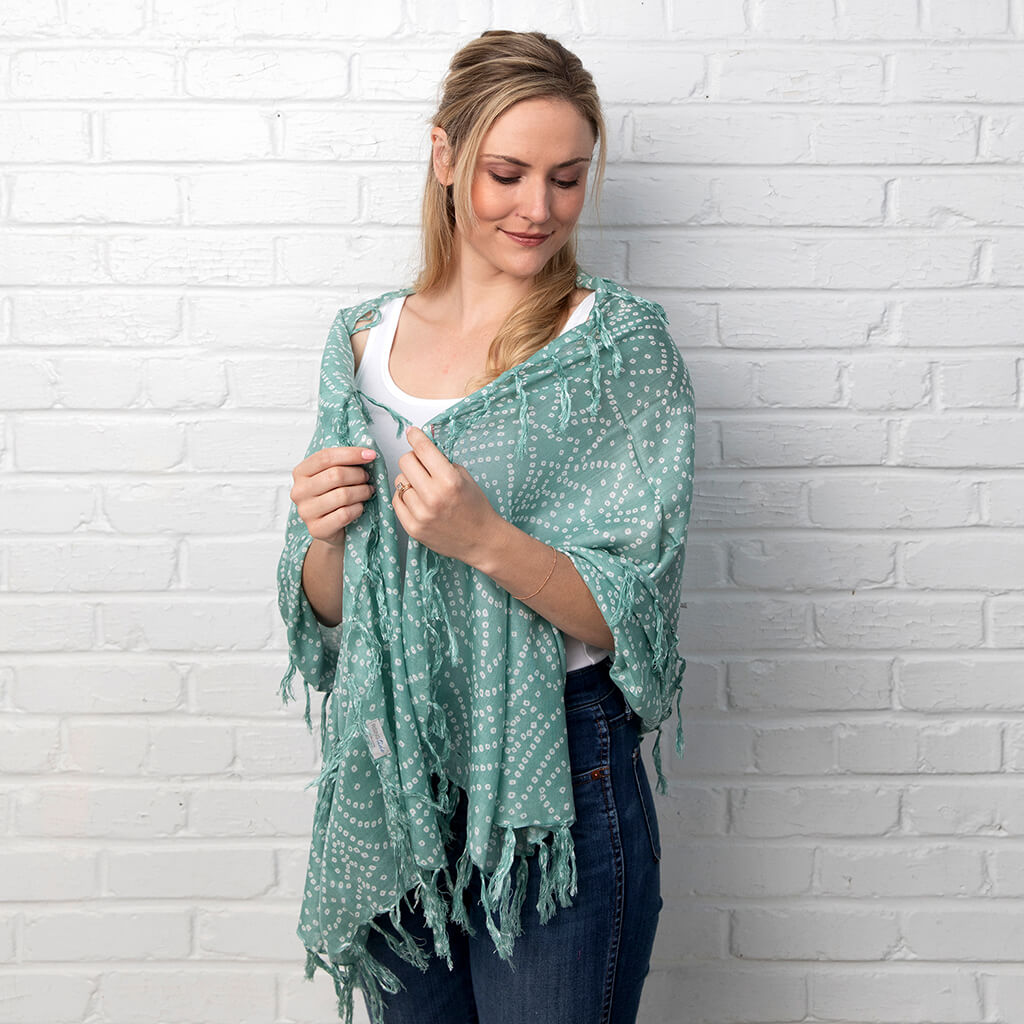 Our bold Sierra wrap is hand dyed and printed by our artisan partners in India. Inspired by global patterns, the Sierra is a summer stunner. Crafted on 100% modal cloth, sustainably made from the fibers of beech wood trees, the Sierra has an incredibly soft and relaxed feel.