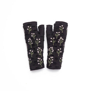 Our signature fingerless gloves are embroidered by artisans in Nepal. The Winterberry style is perfect for keeping your hands warm and your fingers free.